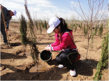 植树活动正式开始后,大家有的抬树苗,有的挖树坑,有的填土,各个环节都十分的有模有样,而且一丝不苟,给植树基地的工作人员们留下了深刻印象,受到了他们的充分肯定。